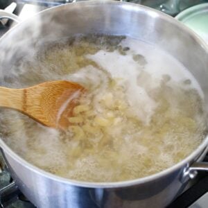 - Cook the pasta: Bring a large pot of salted water to a boil. Cook the pasta according to package directions until al dente. Reserve about 1 cup (240ml) of pasta water, then drain and set aside.