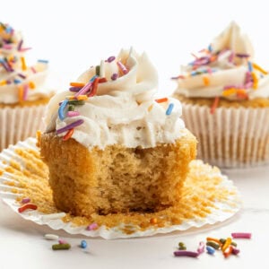 Use a 1:1 gluten-free flour blend that includes xanthan gum (like Bobโs Red Mill Gluten-free 1 to 1). If your blend doesnโt contain xanthan gum, add ยผ teaspoon for better texture and structure. The cupcakes might be a little denser and crumbly, but they will still be delicious. Storage/ Make Ahead: