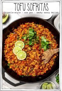 Smoky, saucy, and packed with deep, rich flavor, this Sofritas recipe tastes just like Chipotle’s, but it’s even better because it’s homemade, budget-friendly, vegan, and ready in one skillet. Crumbled tofu is browned until golden, then simmered in a tomato-chipotle sauce with poblano pepper, onions, and warm spices. Perfect for burrito bowls, tacos, nachos, or meal prep!