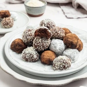 - Coat: Roll each ball in your choice of coating, then return to the plate or parchment-lined baking sheet.